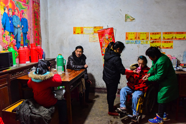 校車漸近,投來橘色光束,汪桂月咬緊牙關(guān),奮力將60多斤重的孫女從輪椅里抱上肩頭,再一鼓作氣背上校車。對(duì)于身高剛過一米四的汪桂月來說,這短短的一分鐘顯得異常漫長,卻又不容有失。年近七旬,汪桂月背起孫女,并不輕松。但是,這個(gè)家只有她能扛起這份責(zé)任。汪桂月的兒子在外打工,一家人都指望他來養(yǎng)活。老宅里只剩下自己、老伴和兒媳。老伴患有嚴(yán)重的心臟病,兒媳身體一直不好。