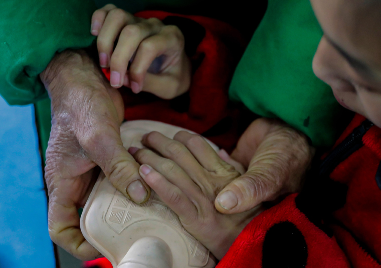 另一間屋里,兒媳幫婷婷做著康復(fù)訓(xùn)練,這是對(duì)抗肌肉萎縮的最佳方式。從腿部到手部,接著活動(dòng)腳趾、拉伸膝蓋。整套訓(xùn)練要一個(gè)多小時(shí),也是婷婷每天的必修課。