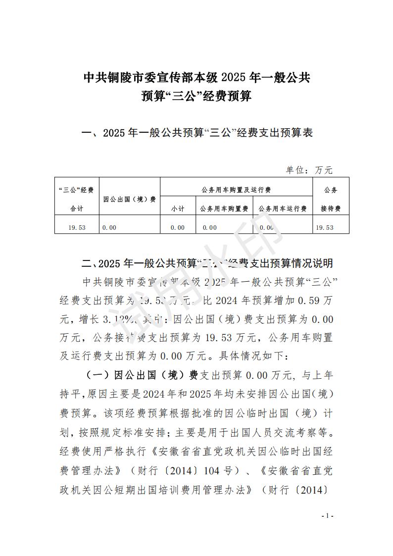 2025年中共銅陵市委宣傳部本級單位“三公”經(jīng)費(fèi)預(yù)算公開