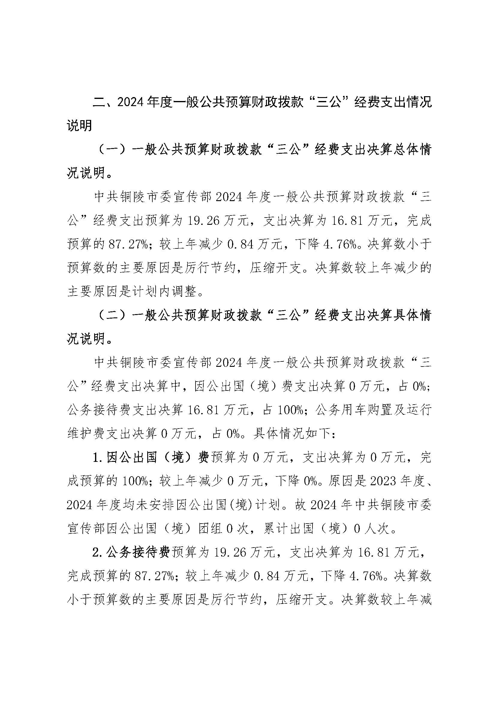 中共銅陵市委宣傳部2024年度一般公共預(yù)算財政撥款“三公”經(jīng)費支出決算