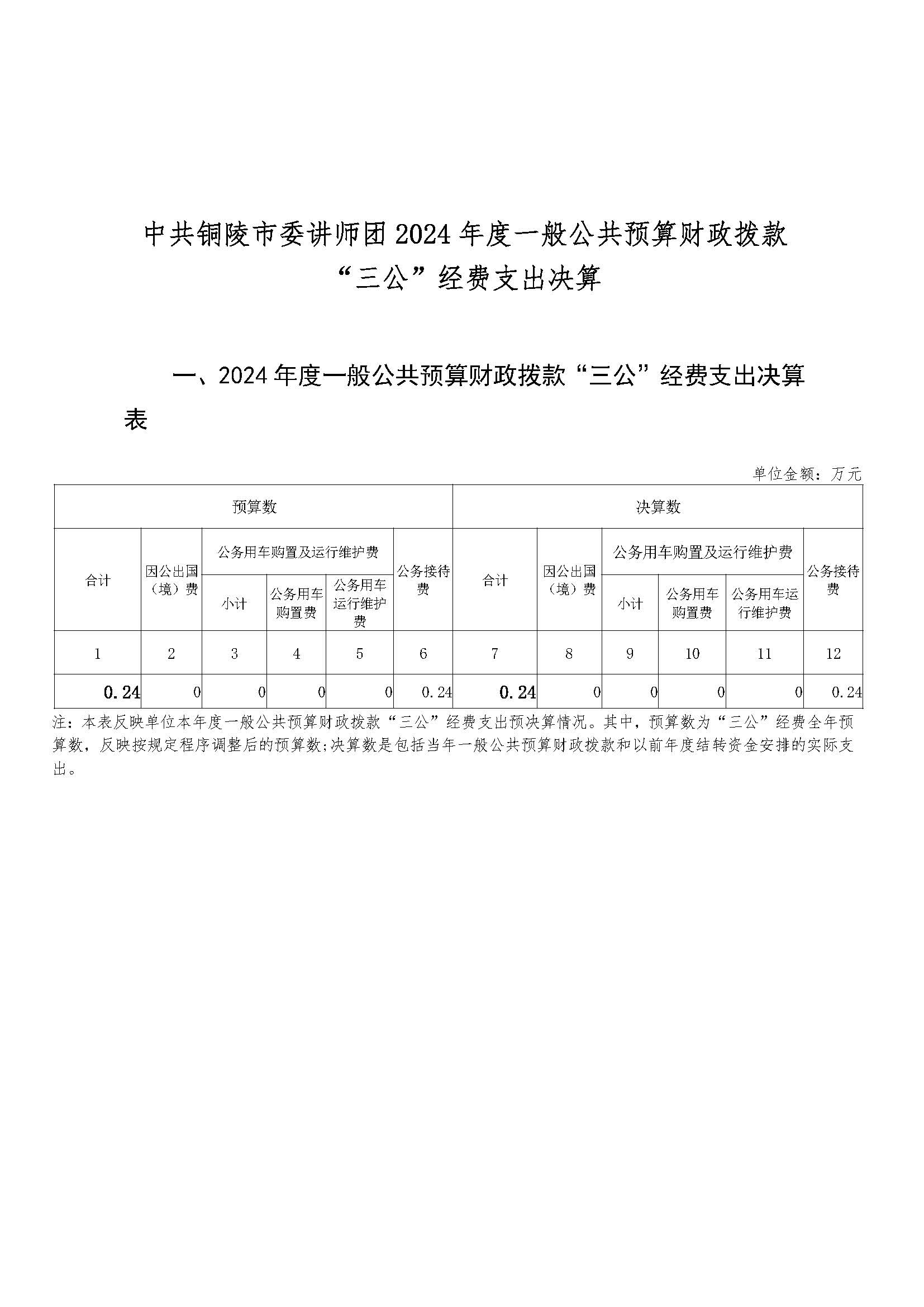 2024年中共銅陵市委講師團(tuán)單位“三公”經(jīng)費(fèi)決算公開
