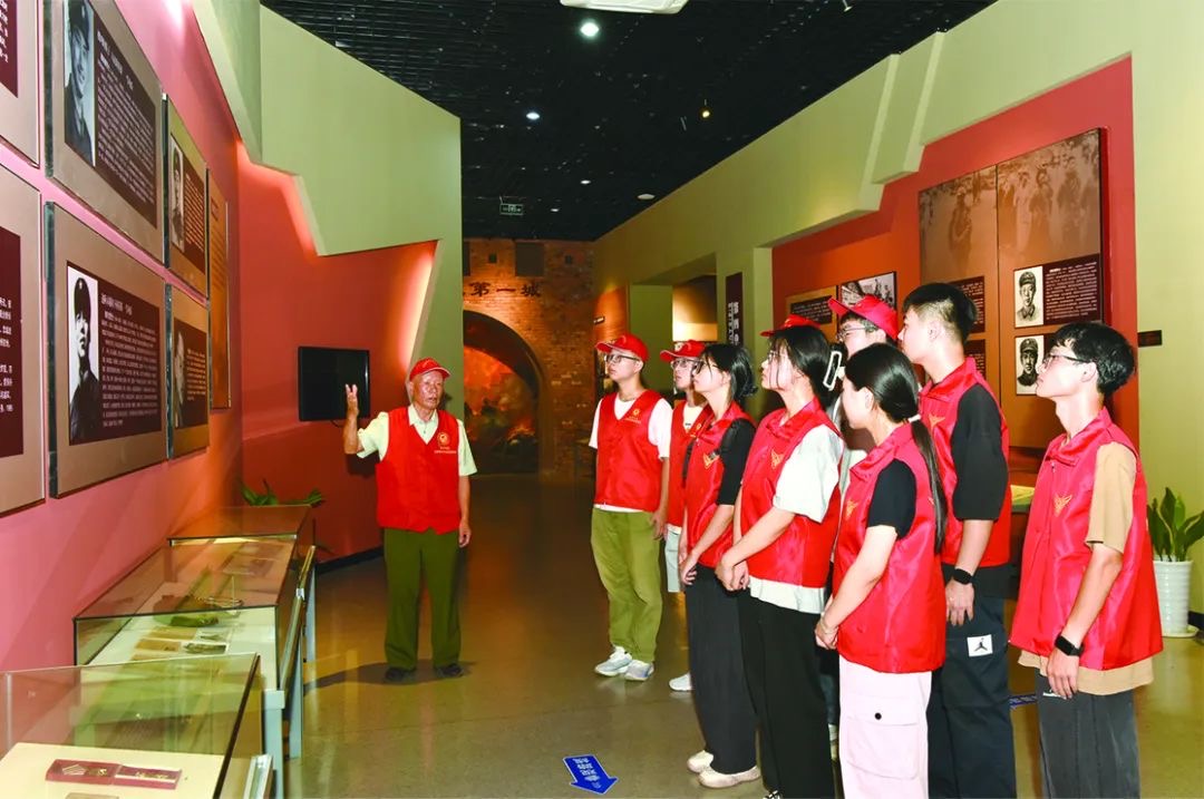 “中國好人”汪榮振在市烈士紀念館為大學生講述革命歷史和英烈事跡。 儲著傳 攝