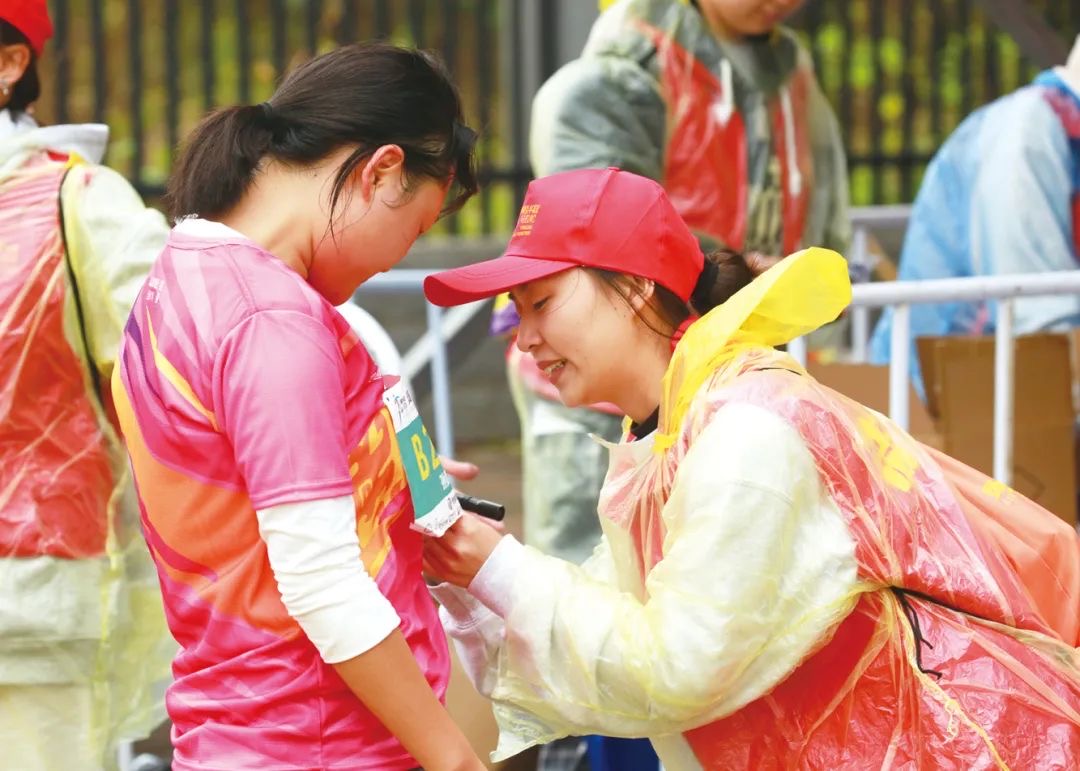 志愿者在銅陵半程馬拉松比賽現(xiàn)場確認選手信息。 潘偉 攝