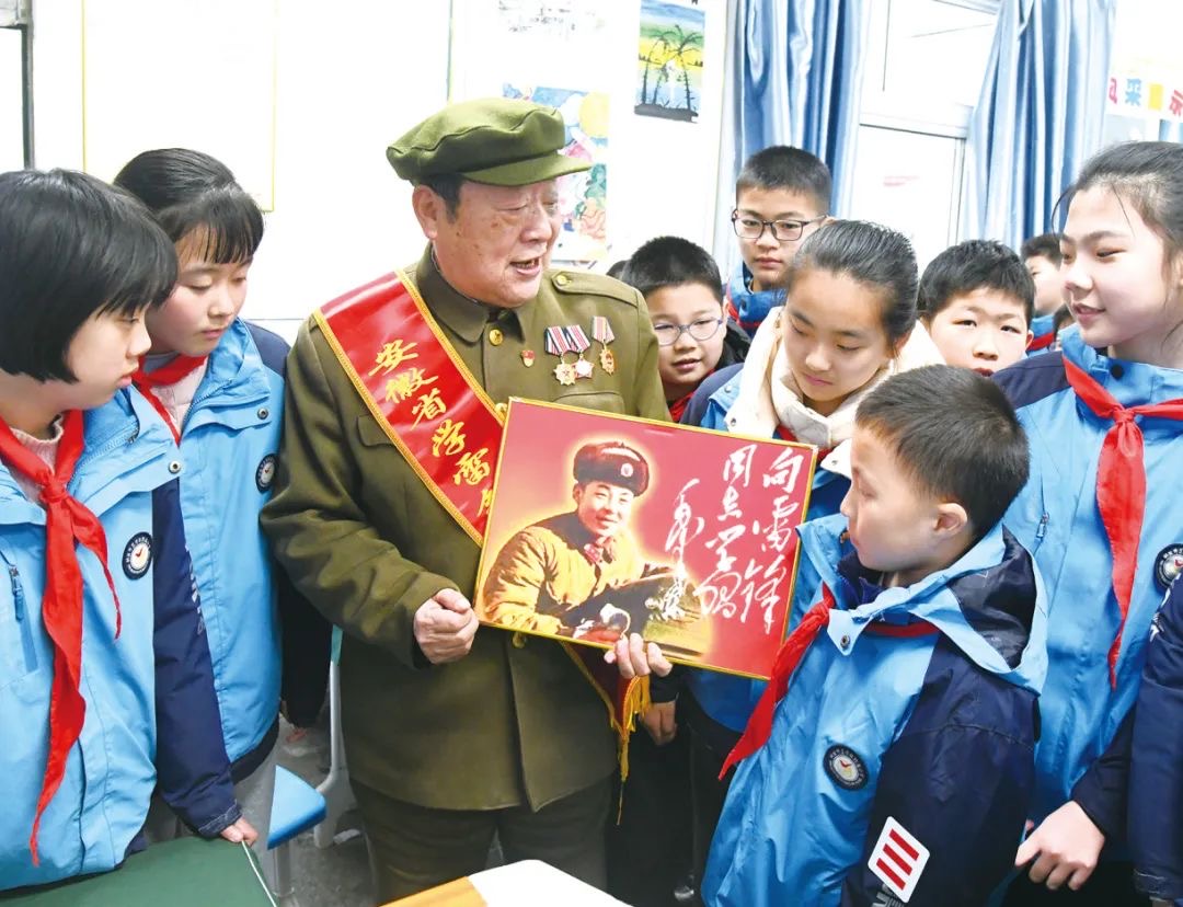 銅官區(qū)關工委“五老”宣講員戴恒勤在向小學生們義務宣講雷鋒故事。 劉敏 攝