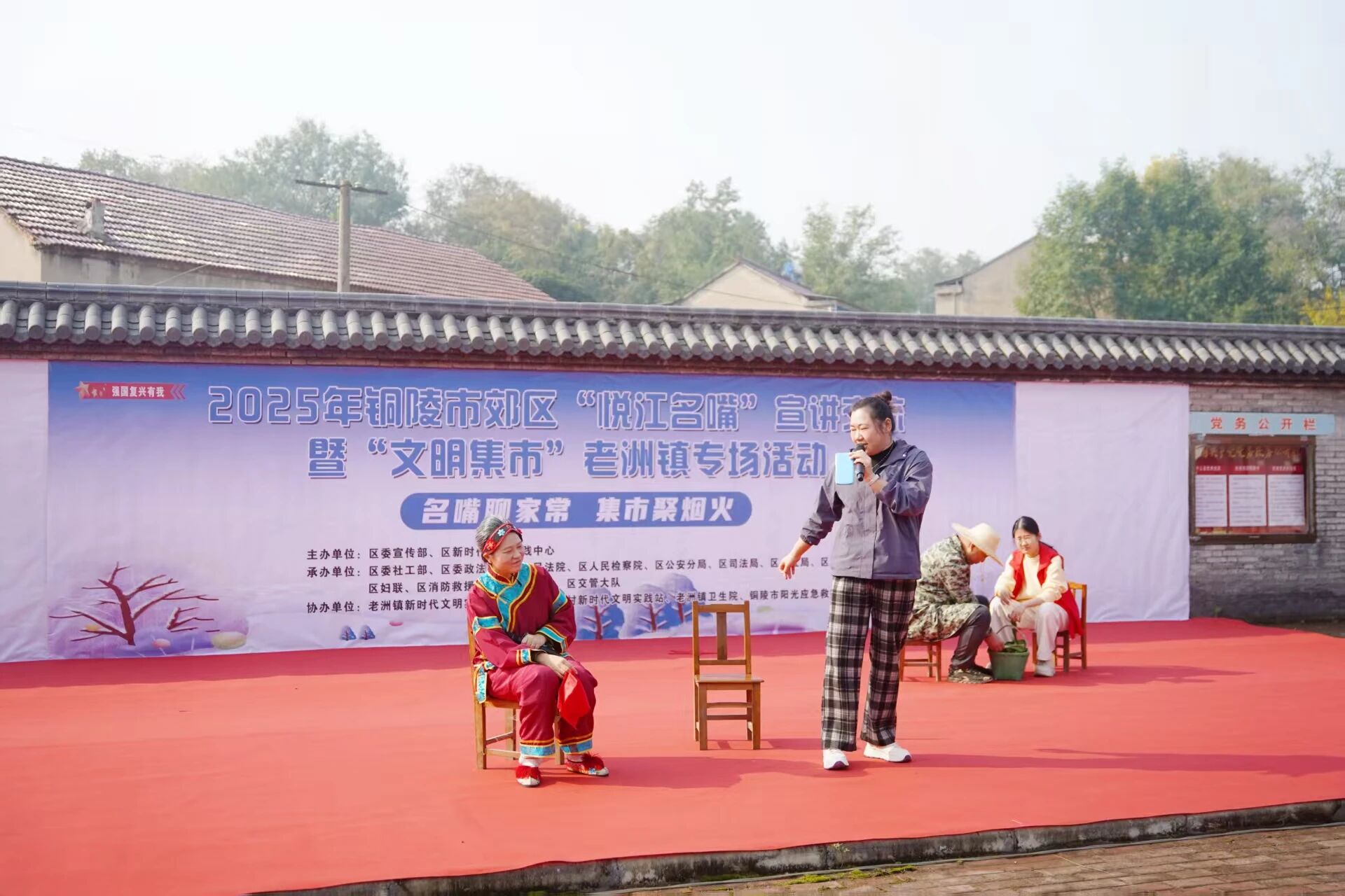 這邊宣講聲聲入耳,那邊“文明集市”人頭攢動(dòng),熱鬧非凡。志愿者們耐心細(xì)致,以專業(yè)技能為群眾健康保駕護(hù)航;更有垃圾分類、防詐騙、食品安全等“文明攤位”,村民在逛集市的同時(shí),輕松掌握實(shí)用知識(shí),文明理念悄然扎根心間。移風(fēng)易俗宣傳貫穿活動(dòng)始終,老洲鎮(zhèn)同樂村群眾自編自演的小品《同樂村“三花”說婚俗》,道出舊婚俗的困擾和對(duì)新時(shí)代文明、簡(jiǎn)約婚嫁方式的熱切向往。演出過程中,演員們真摯的表演和富有感染力的臺(tái)詞,深深打動(dòng)了在場(chǎng)的每一位觀眾,現(xiàn)場(chǎng)掌聲此起彼伏,經(jīng)久不息,充分體現(xiàn)了群眾對(duì)文明新風(fēng)的認(rèn)同與支持。